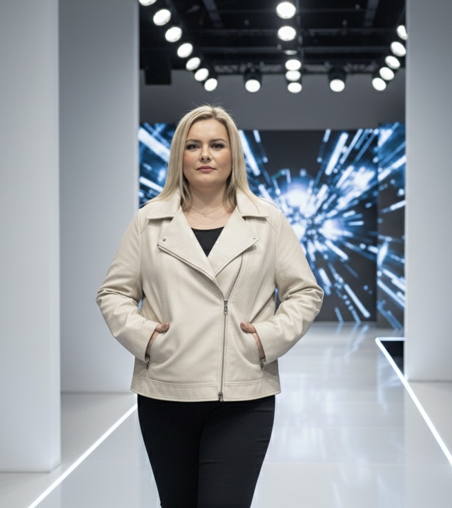 Biker de polipiel en color beige de talla grande