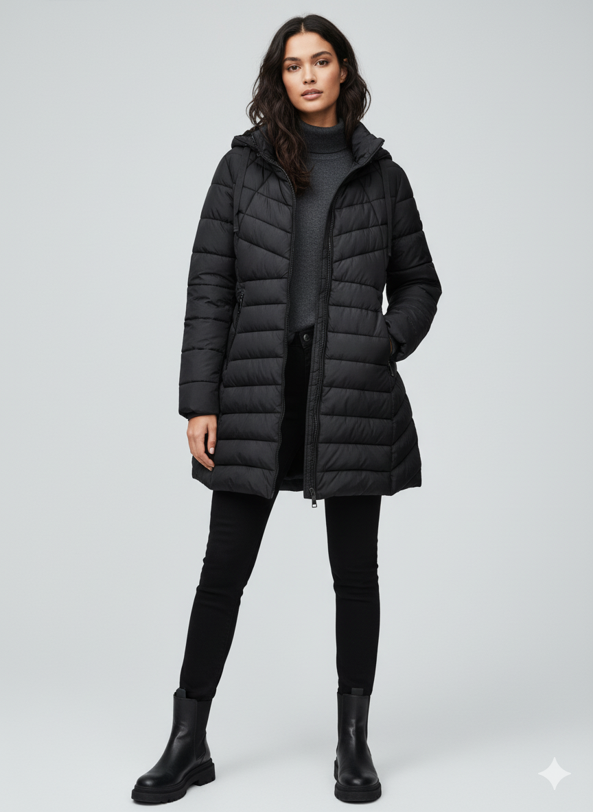 Chaquetón por talla en color negro y forrado con pelo por dentro