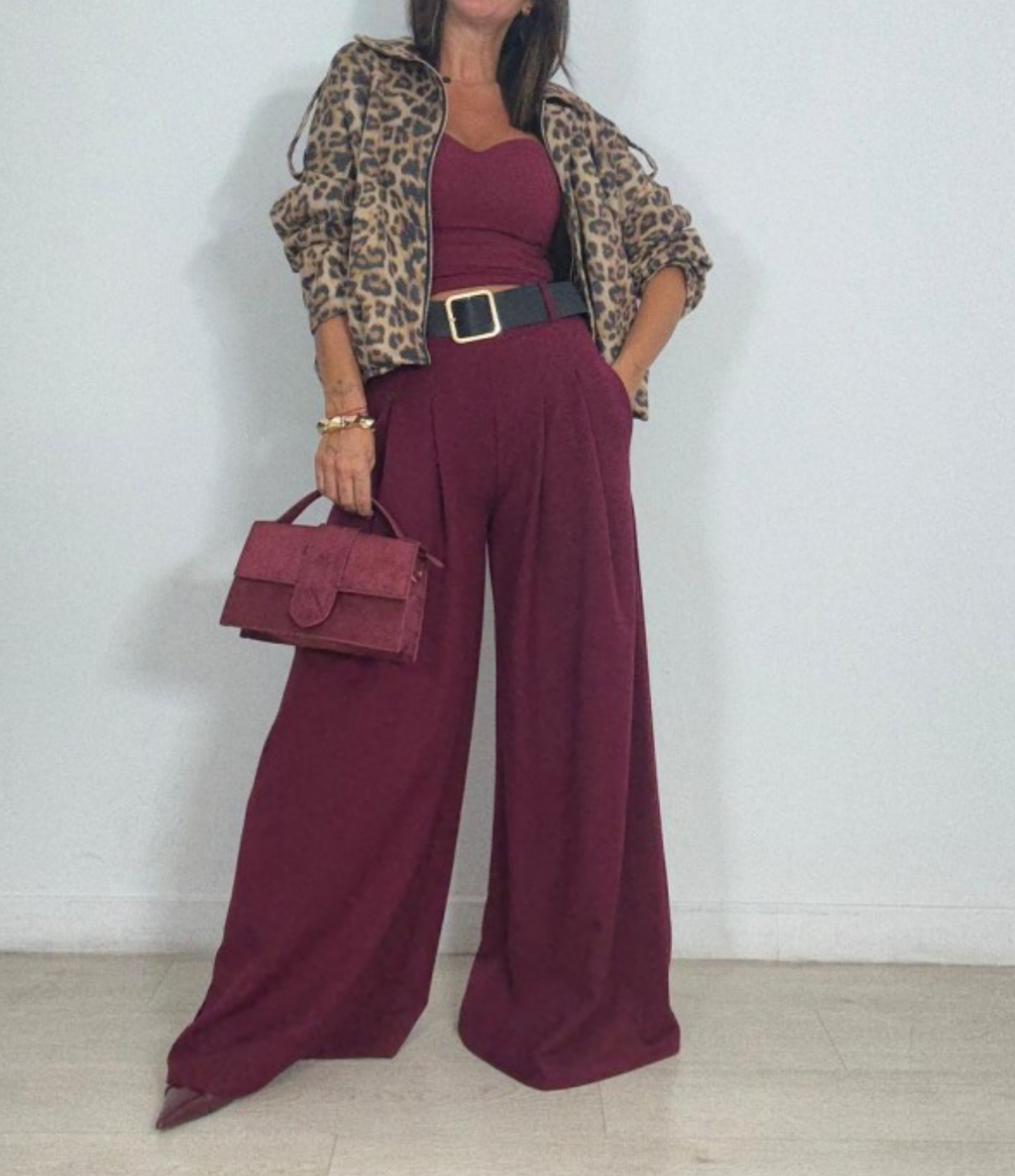 Pantalón con cinturón con pata ancha, talla única desde la 36 a la 44