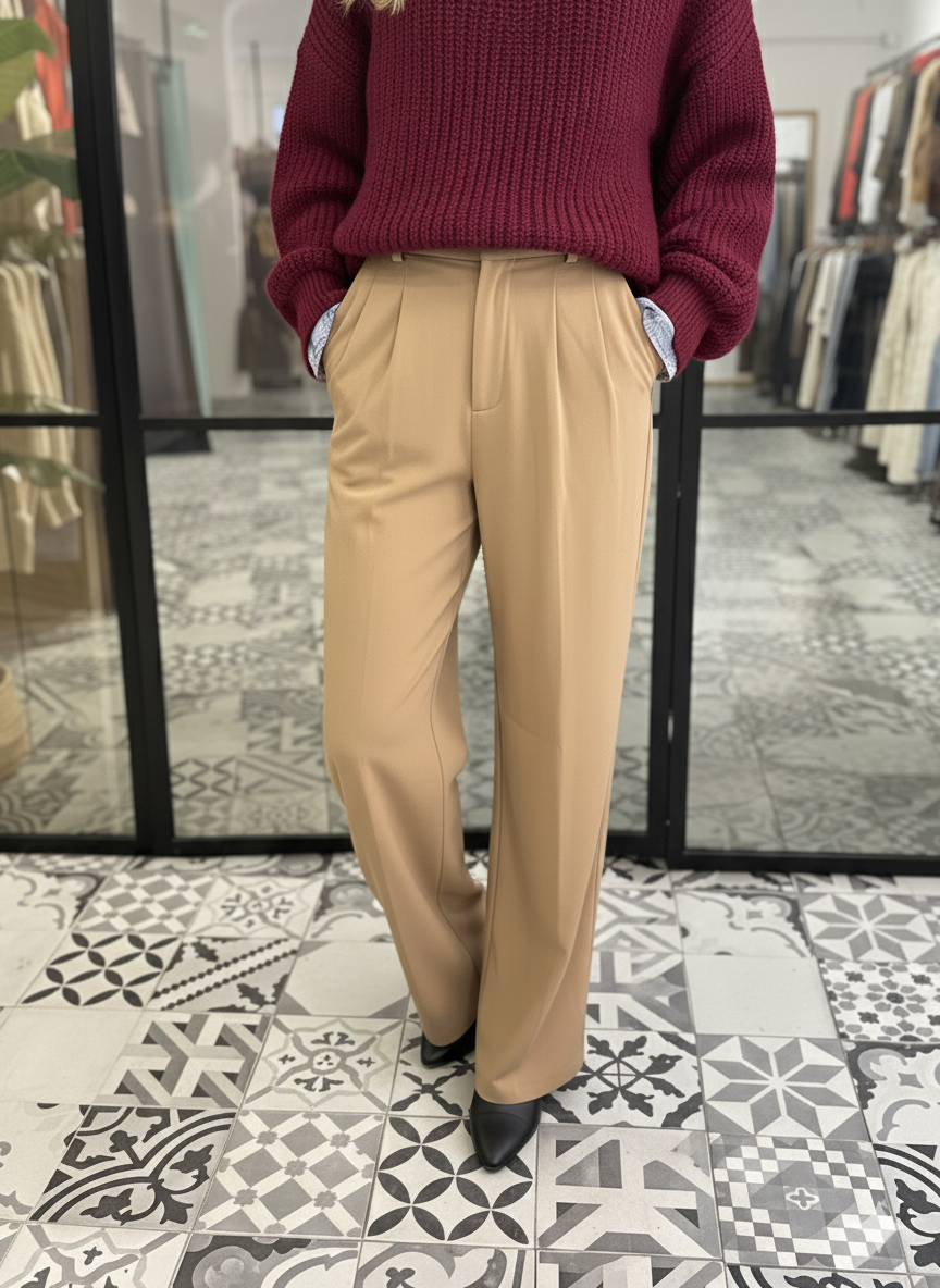 Pantalón con un tejido muy fluido color único en camal por tallas